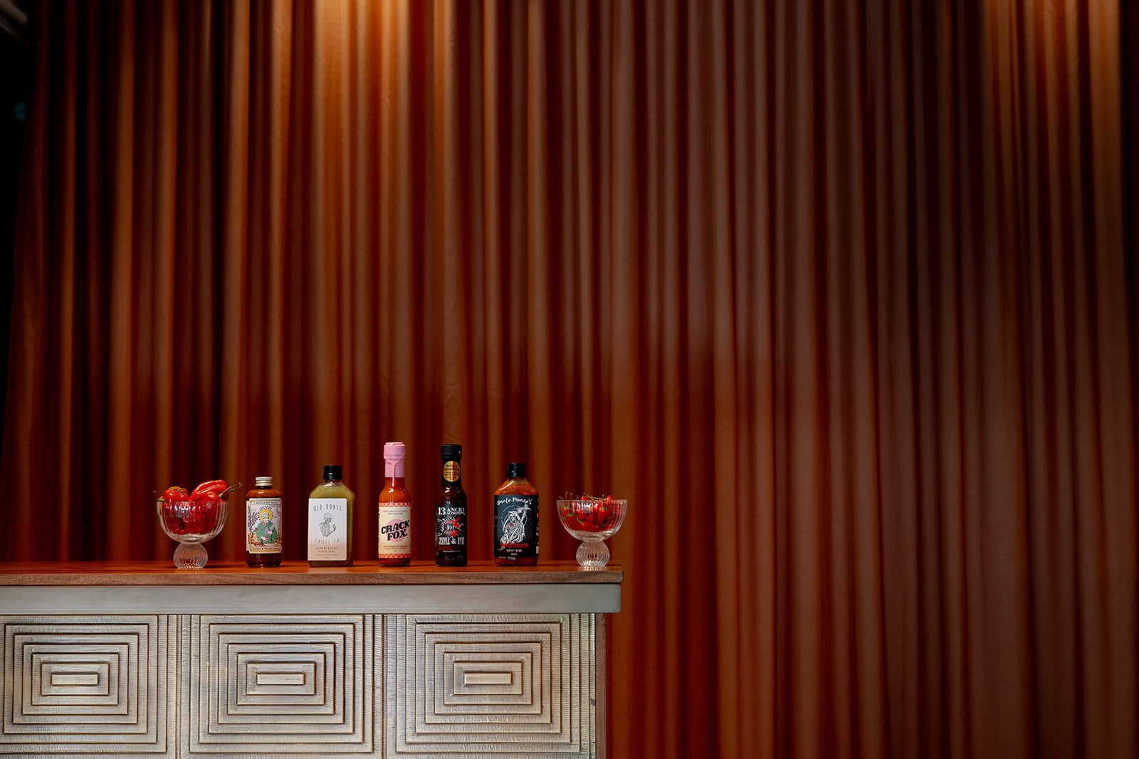 Ingredients: Peppers, Vinegar, Dates, Brewed Coffe (Coffee, water), Pomegranate molasses, Sugar (cane sugar), Habanero mash (habanero, vinegar), Sea salt, smoked lime juice, Coffee beans.