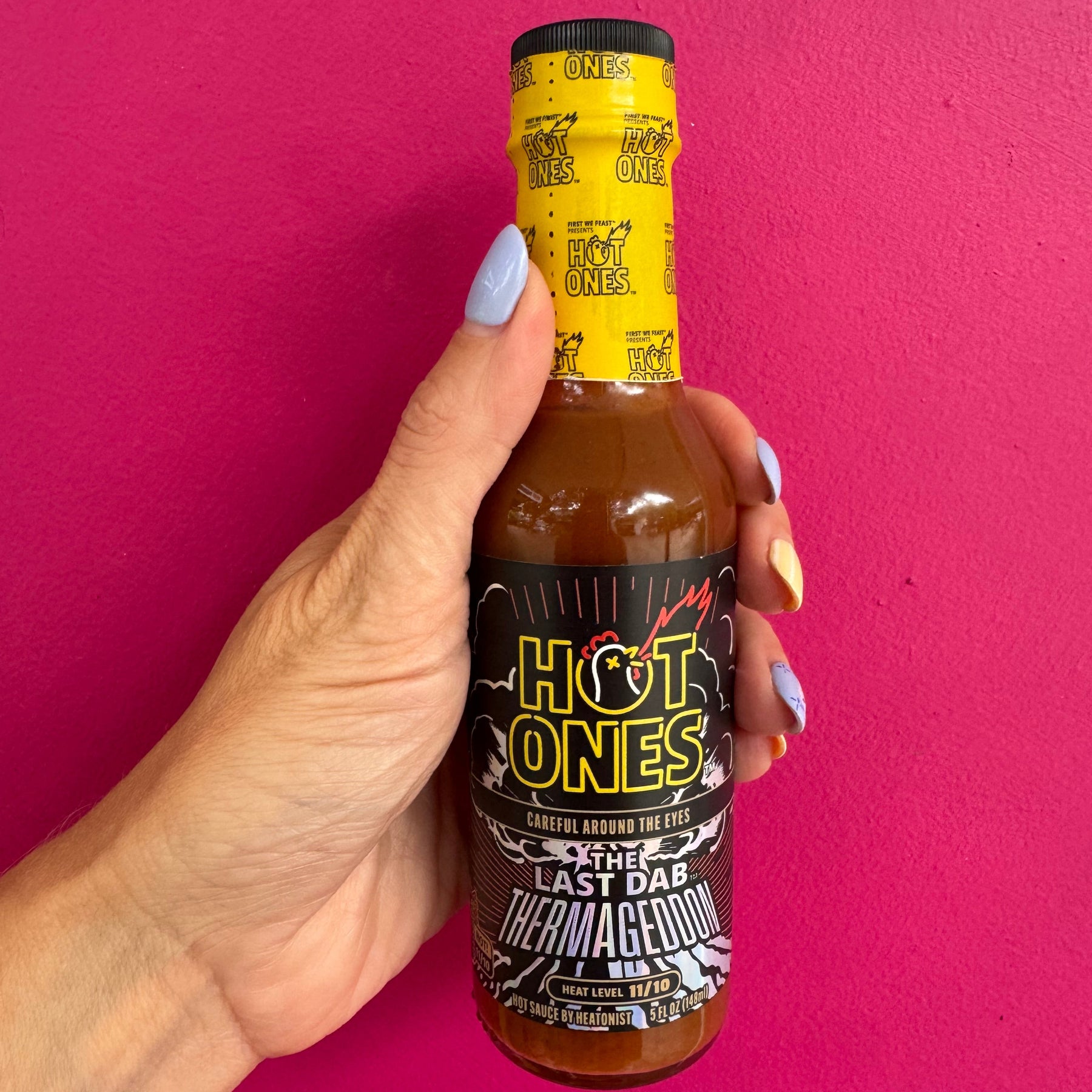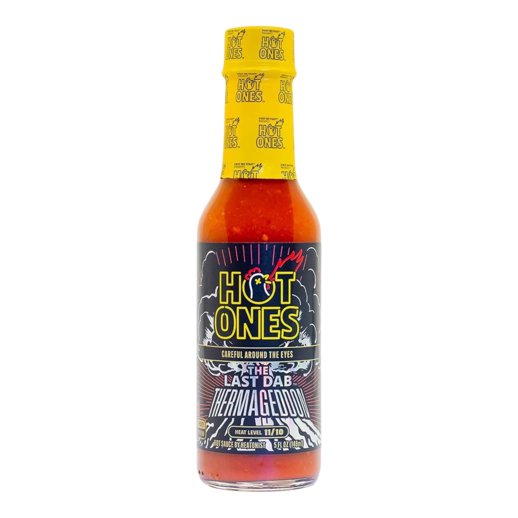Introducing a cataclysmic combination of the world’s hottest peppers: meet The Last Dab: Thermageddon! Forged with chilis from the one and only Smokin’ Ed Currie, it unites four of the hottest peppers on Earth: Pepper X, The Apollo, Carolina Reaper, and Scorpion Pepper. Each have been in a version of The Last Dab before, but together in pepper mash, powder, and pure pepper oil forms, they deliver a slow-building, soul-searing, full-body burn. Dab if you dare!