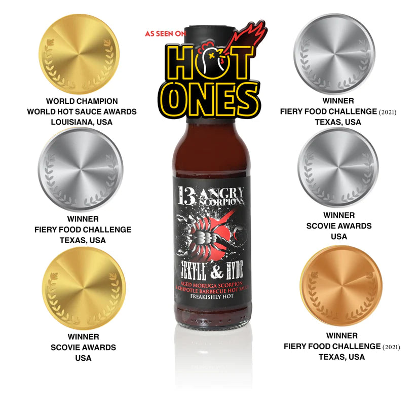 Dubbed “The barbecue sauce from hell” by Hot Ones' host Sean Evans, for it’s scorching Scorpion Pepper heat and rustic flavour profile - Jekyll & Hyde has won 11 of the most respected Hot Sauce awards in the USA.