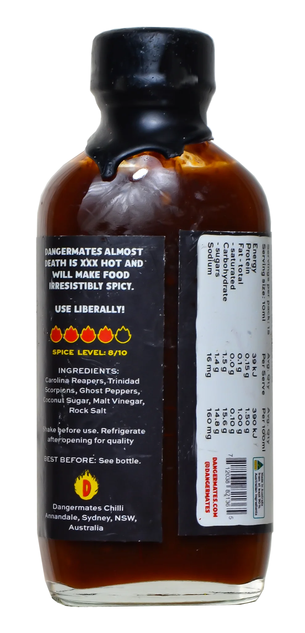 Carolina Reapers and Trinidad Scorpions create a deliciously rich and high heat chilli sauce, which will ‘almost’ blow your head off, yet have you coming back for more and more and more... and more.