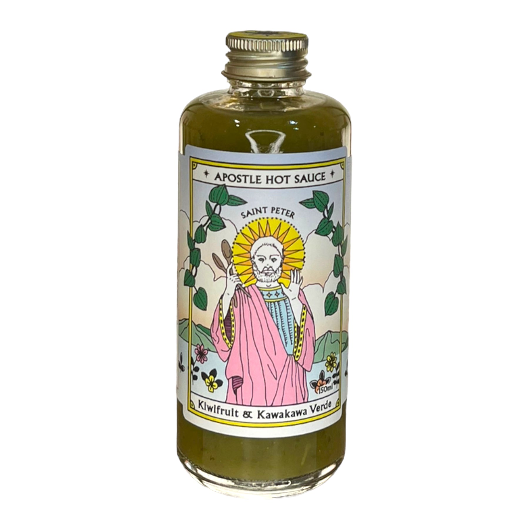 Ingredients: organic apple cider vinegar, kiwifruit (23%), capsicum, jalapeño, salt, kawakawa (less than 1%).